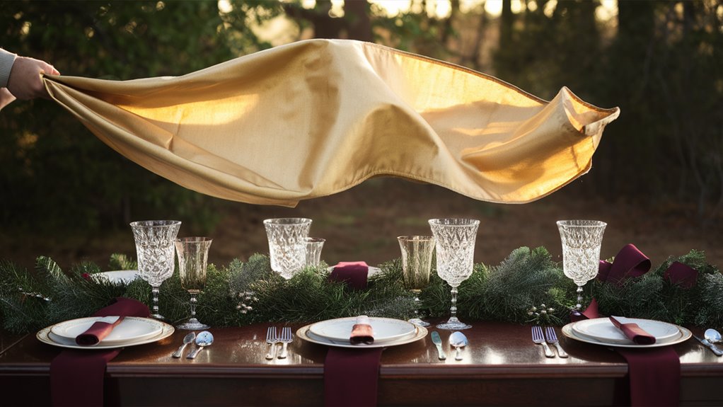 Create a wind-resistant foundation by implementing a double-secured tablecloth system. Start with sturdy clip placement at corners and midpoints, then layer with decorative weights that complement your design theme.
